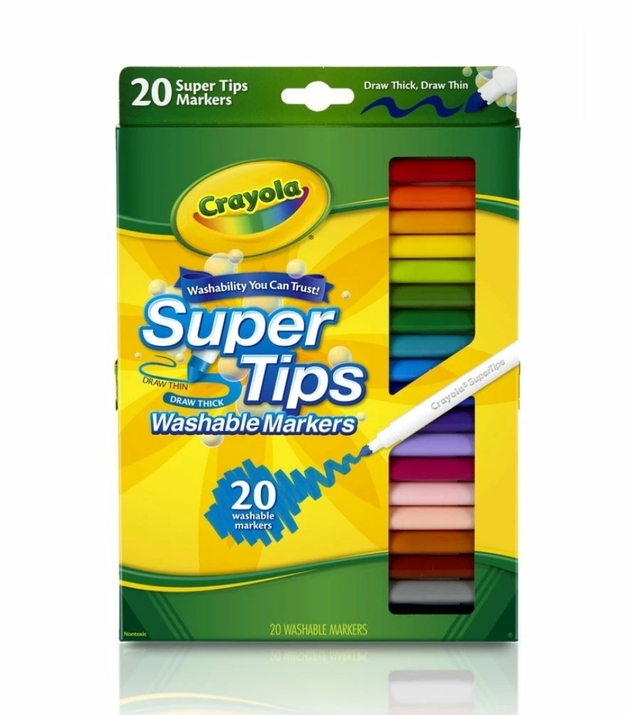 These Crayola Super Tips Markers can draw thin or thick lines thanks to an easy to use conical tip. The 20 markers come in a portable, reclosable pouch which makes them easy to transport around your school, home or office. The ink washes out of fabrics and other materials so you do not have to worry about accidentally staining your clothes or desk.