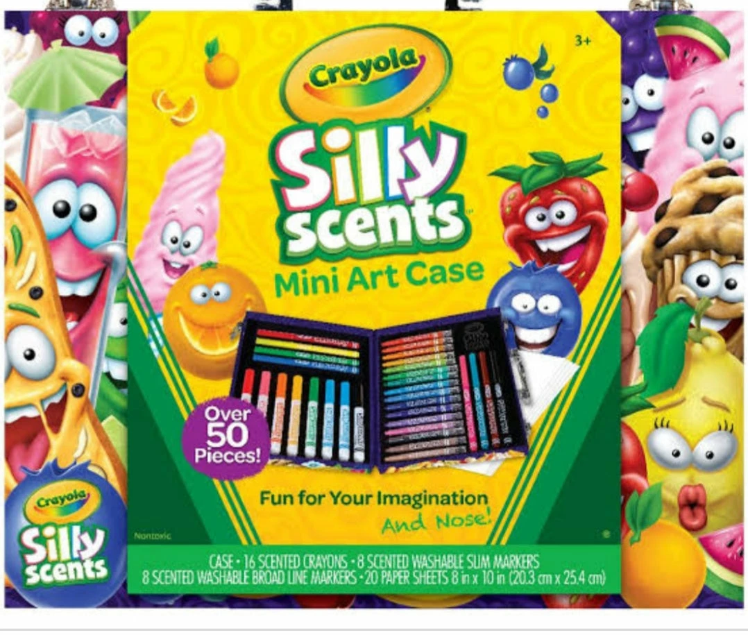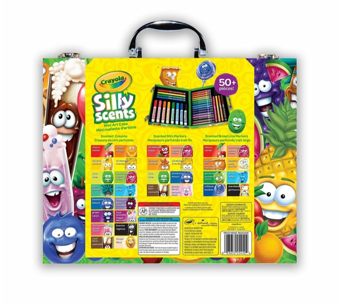Get ready to be creative, because this super silly scented art case contains all the scented Crayola tools you’ll need to create amazing scented art! Contents include – 16 Silly Scents Mini Twistable Crayons, 8 Silly Scents Slim Markers, 8 Silly Scents Broad Line Markers and 20 Sheets of Paper with Silly Scents Page art.