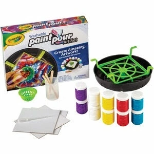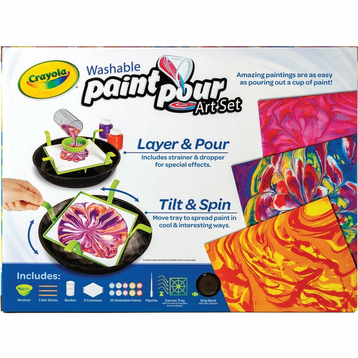 Pour out a colourful masterpiece with Crayola Washable Paint Pour Art Set! Paint pouring is the fun, easy way for even novice painters to achieve beautiful works of art. And there’s no cause to worry either with the included less-mess paint tray. Even the occasional “oops” is no problem with the included washable paint. A truly magical and fun art activity for kids and adults!