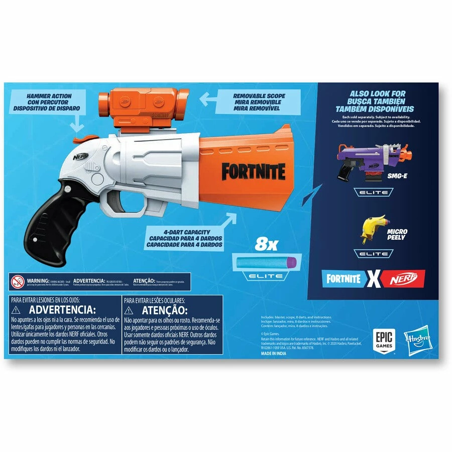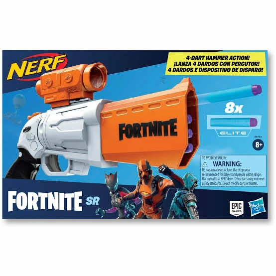 Play Fortnite in real life with the dart-firing Nerf Fortnite SR blaster that is inspired by the one used in Fortnite, capturing the look of the one from the popular video game. The SR blaster features 4-dart hammer action so you can fire 4 darts in a row before reloading. Take aim at your target and press the trigger to unleash 1 dart. To launch another dart, pull back the hammer, and press the trigger. Use the removable scope to help you line up your shot. The Nerf Fortnite SR blaster comes with 8 Nerf Elite darts, enough to fully load the blaster, with 4 darts for backup firepower when it’s time to reload. Official Nerf darts are made of foam and are tested and approved for performance and quality