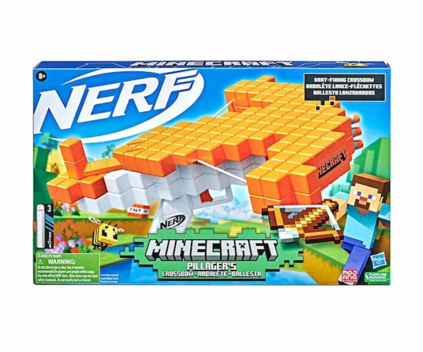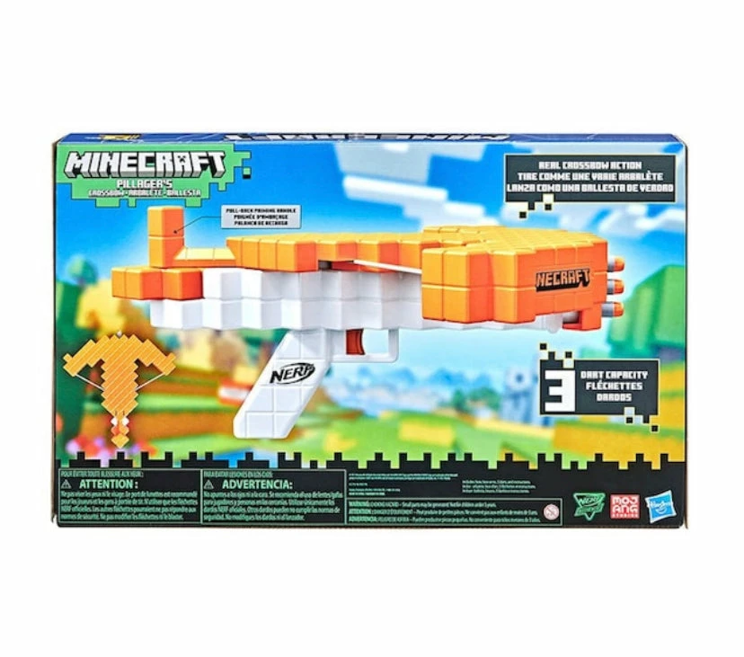 Nerf and Minecraft combine to create distinctive blasters for your Nerf battles! The Nerf Minecraft Pillager’s Crossbow takes its inspiration from the popular game, Minecraft.