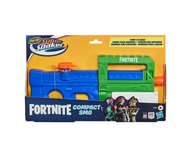 The NERF Fortnite Compact SMG water blaster is inspired by the blaster used in Fortnite, replicating the look of the one from the popular video game!