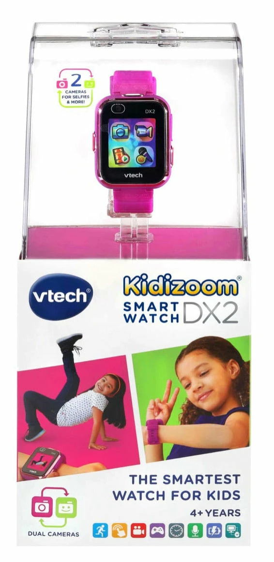 The perfect tech for kids, Kidizoom® Smartwatch DX2 by VTech® lets them take pictures, videos, play games, tell time and more! Featuring a new sleek and stylish design, this durable smartwatch includes 55 digital and analog customizable watch faces to help kids learn to tell time