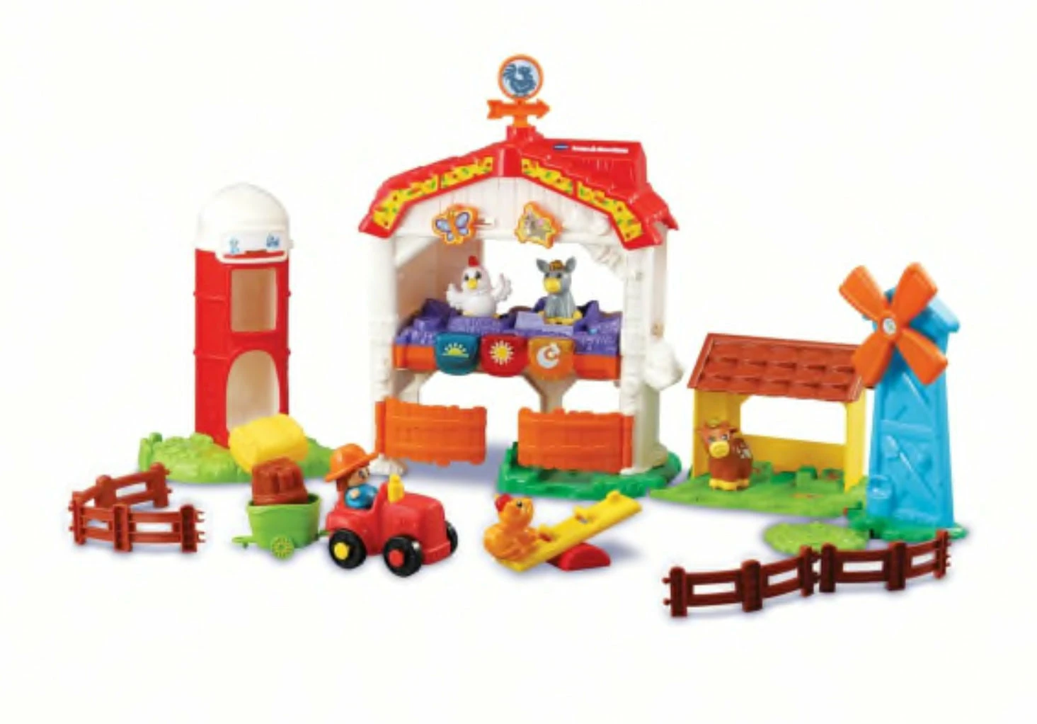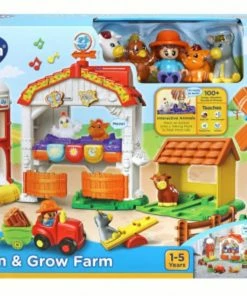Rise and shine for playtime with the VTech Learn and Grow Farm. Set up your farm with a barn, fences, tractor, farm animals and more. Be the farmer and drive the tractor and cart to pick up hay and wood, then drop them into the silo.