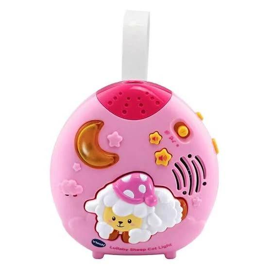 Press the Lullaby Sheep Cot Light’s sheep button to play soothing responses that calm your little one and send them off to a peaceful sleep. Reponses include 3 sing-along lullabies, 40 calming melodies, relaxing nature sounds and soothing shushing sounds. Choose between the 2 modes to play either music or sounds. The cot light features a 10, 20 and 30 minute timer, volume controls and light controls that operate the night light and the rotating light pattern projected onto the ceiling. The built-in sound sensor plays calming responses if baby cries. Strap included to securely attach the unit to a cot.
