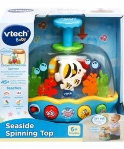 Press & discover ocean animals, colours and numbers with VTech Seaside Spinning Top! The chunky blue press down plunger spins the ocean animals around whilst the sea bed lights up helping your little one discover cause and effect relationships. The press buttons introduce the crab, 2 angel fish and 3 star fish to baby, calling out their colours and encourage counting teaching numbers one, two and three. The music button plays 3 happy sing-along songs and 10 jolly melodies. Fun phrases and sounds encourage discovery and exploration.